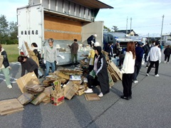 10月25日(土)、PTA資源回収が行われました。吉田科学館の駐車場をお借りし、村椿地区から提供された資源物を次々と業者の車に積み込みました。大人に交じって子供たちもボランティアで作業を行いました。約1時間半ほどでほとんどの作業を終えることができました。