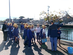10月24日(金)、4年生が総合「黒部の名水を調べよう~生活に生きる水~」の学習で、生地湧水群の清水めぐりを行いました。講師として吉田科学館の先生に説明していただきました。清水の味を比べたり、清水の名前の由来や歴史を聞いたりしながら、清水めぐりを楽しみました。講師の先生には、子供たちからの質問に一つ一つ丁寧に答えていただきました。見学の途中、生地中橋が旋回する様子が見られ、子供たちの歓声が上がりました。子供たちの「黒部の名水」への興味がますます深まった校外学習になりました。