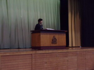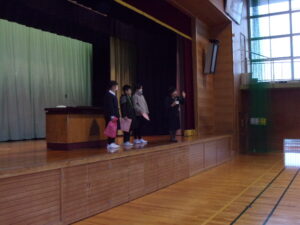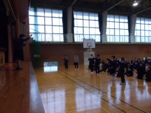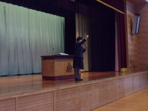 校長先生からの激励の言葉では、書初めは自分自身との対話の時間であること、手本をしっかり見て考えながら静かに書くこと、失敗したと思っても途中であきらめないで最後まで書くこと等のお話がありました。