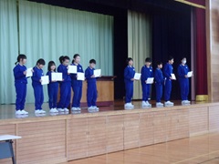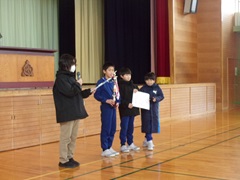 続く授賞集会では、校内書き初め大会や「わくスタノート」7冊達成者の表彰がありました。またスポーツ少年団の受賞披露もありました。