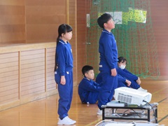 今月の玉椿賞は9名が受賞しました。委員会活動、書初め大会の取組と成果、なわとび練習の様子などに関する受賞が多く見られました。最後の「先生のお話」では、日々陸上競技(短距離走)の練習に励んでいる先生のお話がありました。高い目標をもち、自分自身に負けないために毎日練習を続けているという内容でした。実際の練習の様子の動画もあり、子供たちは驚いたように見入っていました。