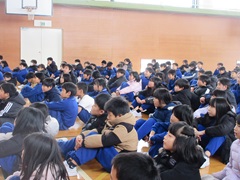 寒い体育館の中にも熱気が漂う全校集会となりました。今年度の残りあと2か月も皆で成長していけることでしょう。