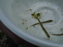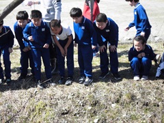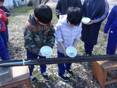 3月12日(木)にサケの稚魚の放流が行われました。5年生が12月に内水面漁協から発眼卵をいただき、約3か月の間、愛着をもって手塩にかけて育ててきました。今日は体長約4㎝に育った稚魚が入った器を一人ずつ5年生から受け取り、放流場所である飯沢川まで慎重に運びました。そして「また元気に帰ってきてね」と願いを込めながら放流しました。放流した後は、橋や堤防の上から元気に泳ぐ稚魚の様子を見守っていました。順調に成育すれば、3~4年後には再び飯沢川に帰ってきます。今からとても楽しみです。