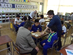 今年度から地域のボランティアによる外部講師の方が参加され、児童にご指導くださるとともに、一緒に活動してくださいました。今日は地区の慶寿会の方が「ゲーム&マジック」クラブで将棋や囲碁の指導をしてくださいました。また、社会開放バドミントンの方々がラケットの握り方、サーブの打ち方等を指導してくださいました。