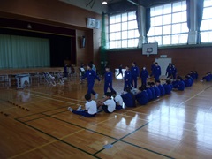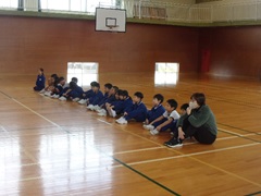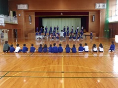 途中、1年生が鑑賞に訪れました。練習の邪魔にならないようにと、担任を先頭に静かに入場して体育館の後ろに座りました。5・6年生の堂々たる演奏に圧倒されている様子でした。演奏が終わると大きな拍手を送っていました。