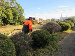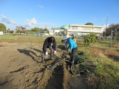 11月15日(土)、PTAによる環境整備活動が行われました。今回は4~6年生保護者のPTA会員環境整備担当者と同厚生部員及び本部役員と教職員の計約20名が参加しました。それぞれの担当に分かれ、畑の防草シートの片付け、ヘチマの片付け、樹木の剪定、畑の整備、築山の草刈りを行いました。1時間ほどで予定していた作業が無事終わりました。日頃簡単には手が回らない仕事をボランティアでしていただき、大変助かりました。ありがとうございました。