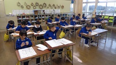 校長先生からの激励の言葉では、書初めは自分自身との対話の時間であること、手本をしっかり見て考えながら静かに書くこと、失敗したと思っても途中であきらめないで最後まで書くこと等のお話がありました。