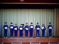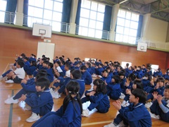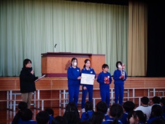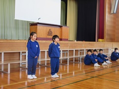 続く授賞集会では、校内での計算大会、市の年賀状展やその他の作品展での入賞者、自主学習「わくスタノート」7冊達成者等、たくさんの子供の受賞があり、子供たちの頑張りの結果が表れた、嬉しい集会となりました。